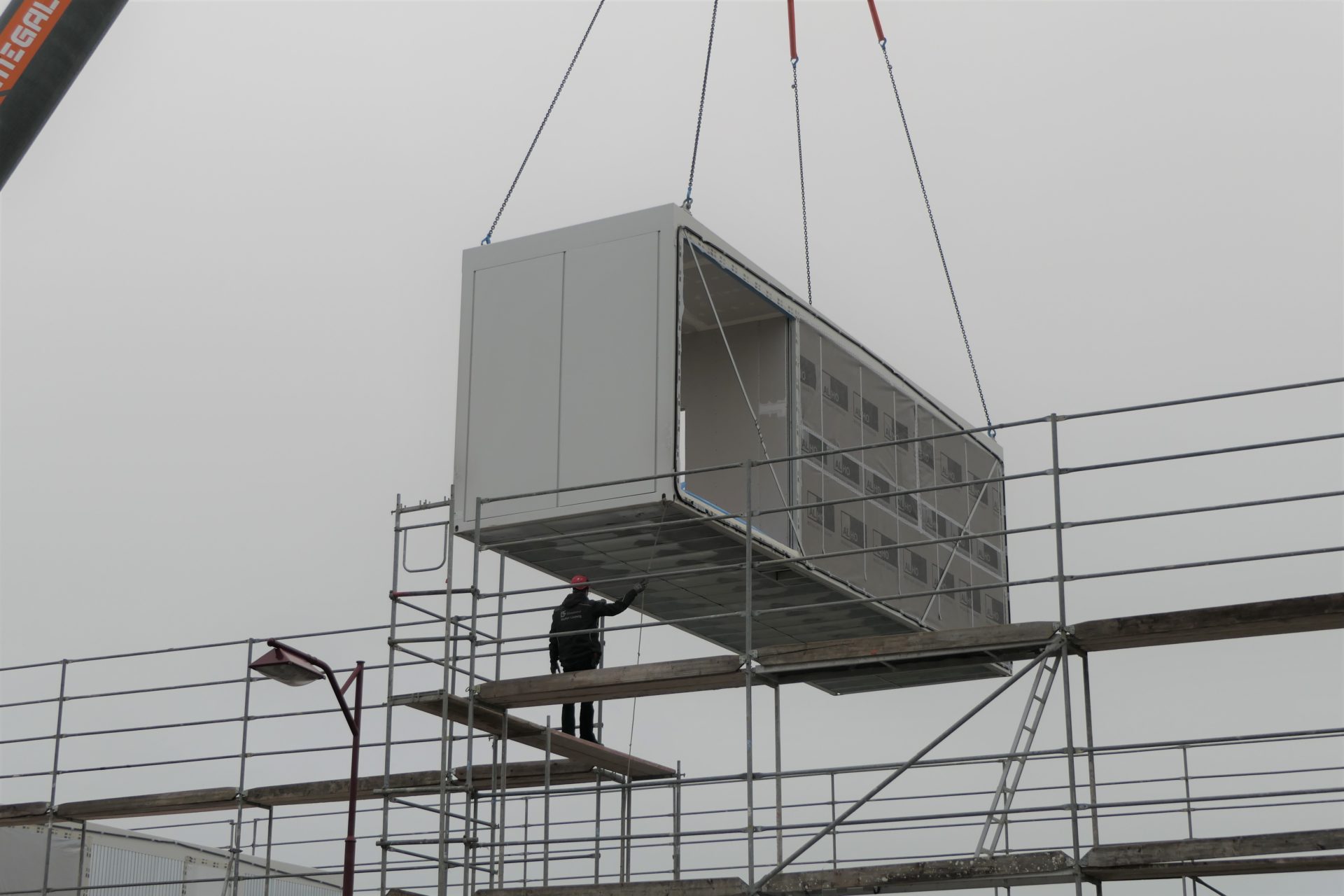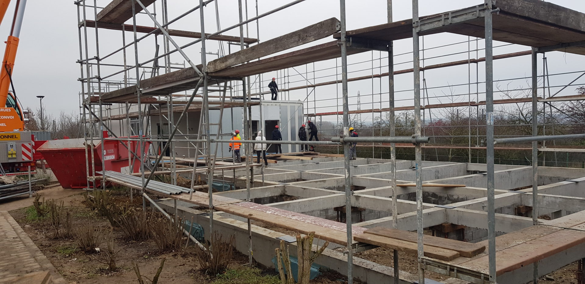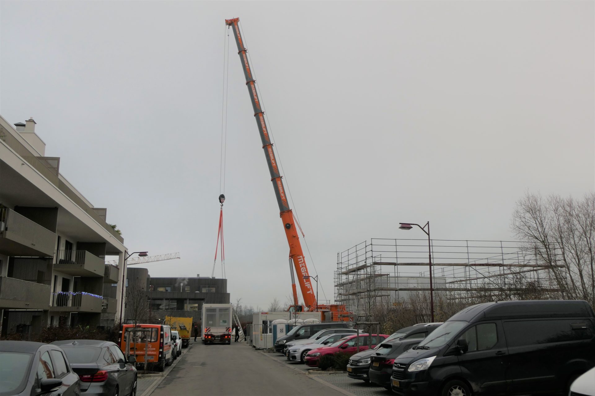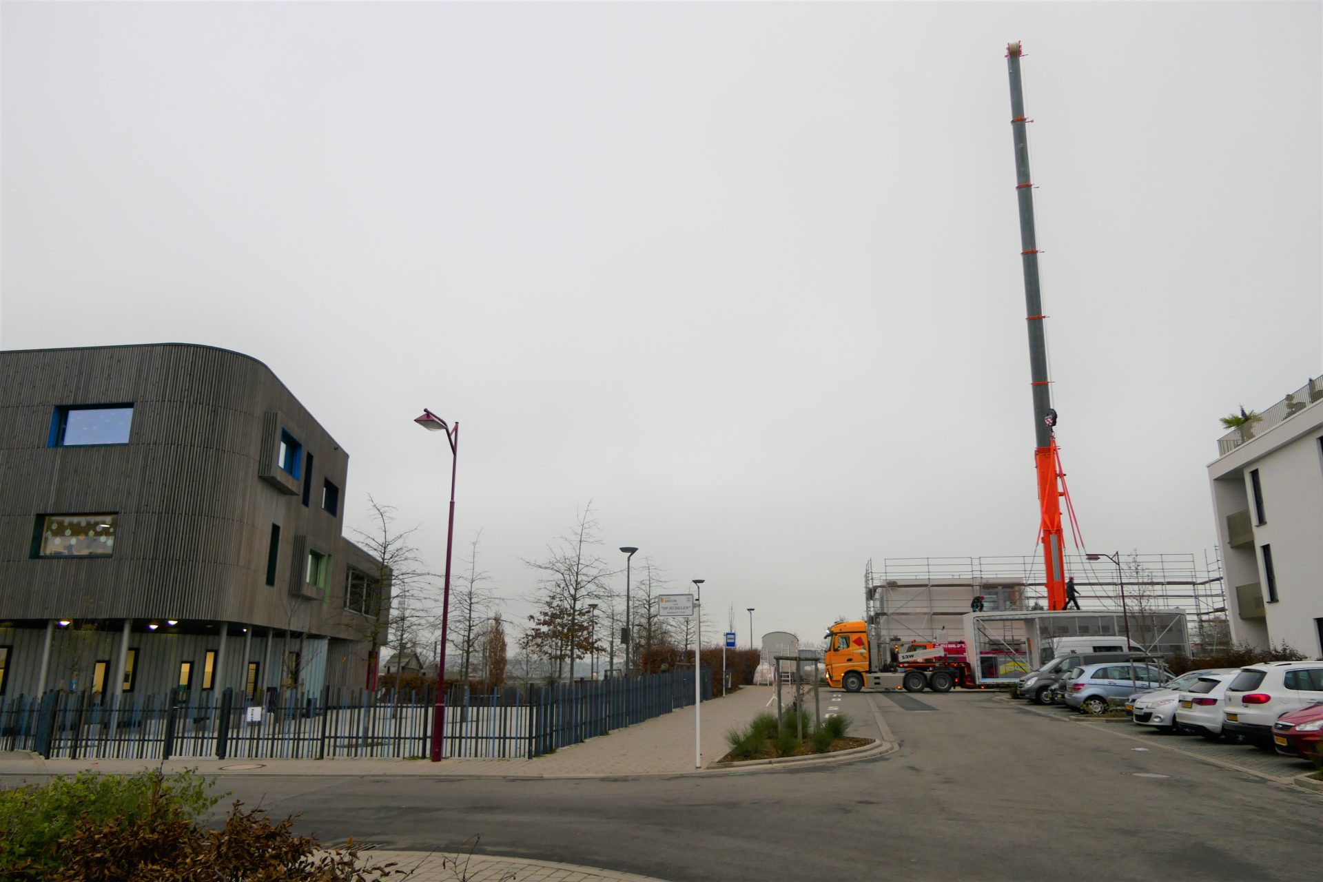 De Modulbau op Hudelen gouf geliwwert, gouf zwëschen dem 9. an 11. Dezember 2020 opgeriicht.