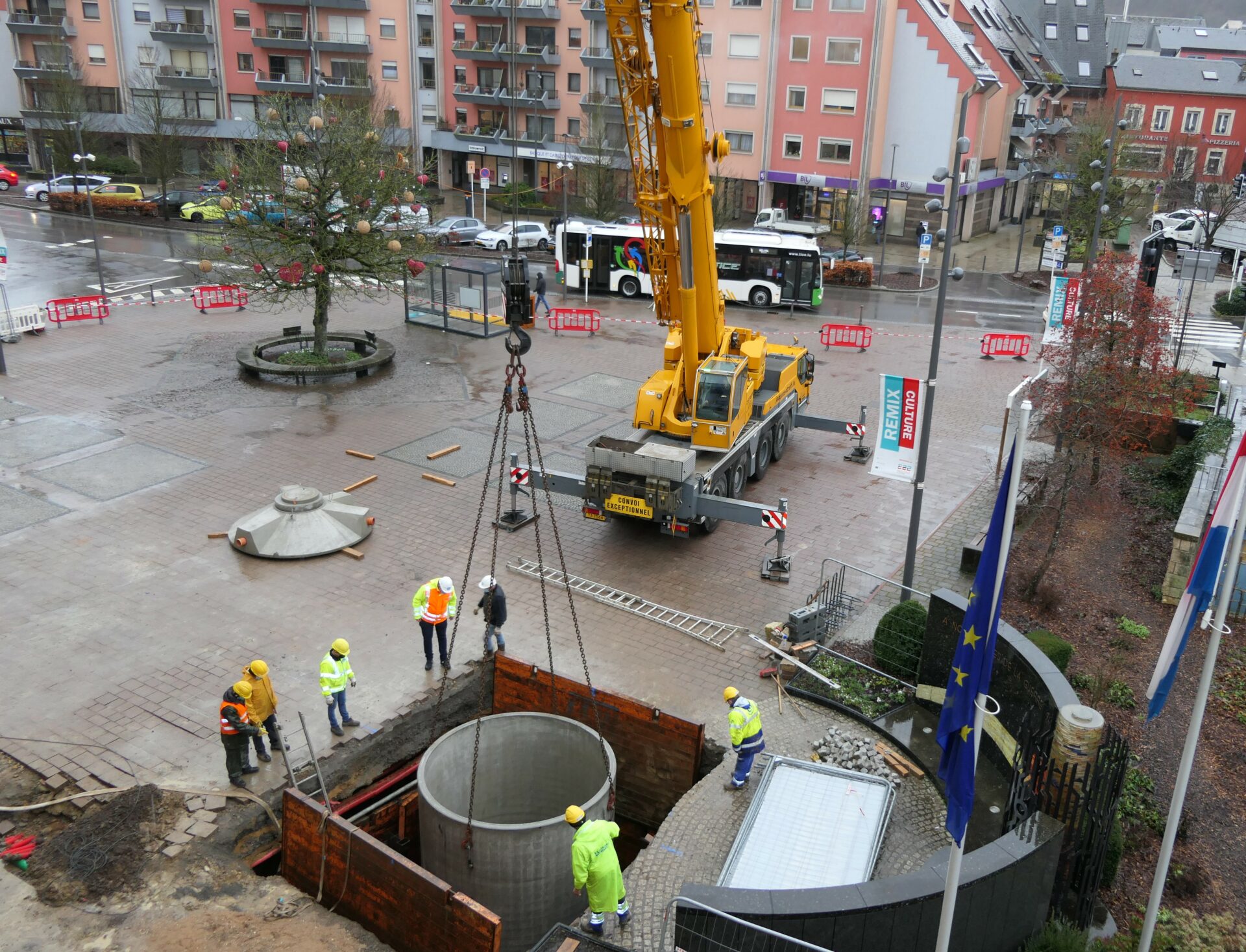 Am Kader vum Chantier op der Fräiheetsplaz huet d’Gemeng e System fir d’Reewaassernotzung fir d’Gemengenhaus ageplangt.