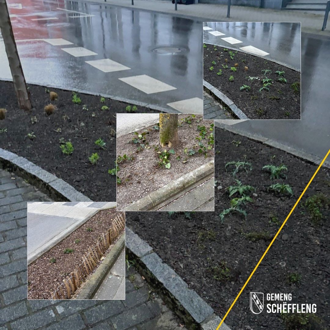 D’Gemeng huet viru kuerzem d’Plantatiounen am ganze Gemengegebitt saisonal opgefrëscht. Op verschiddene Plaze goufen och Holz-Borduren ugeluecht, fir d’Vegetatioun besser ze schützen.