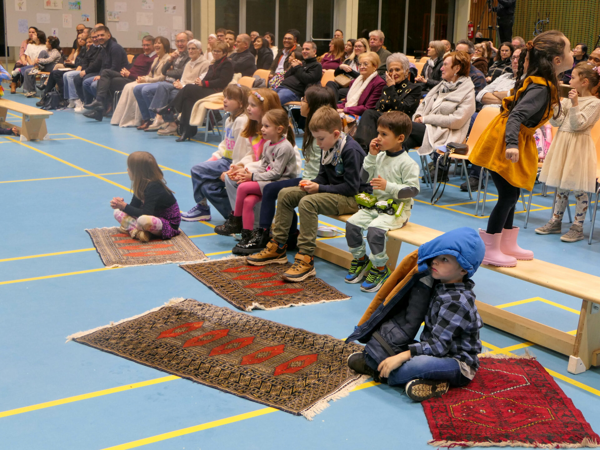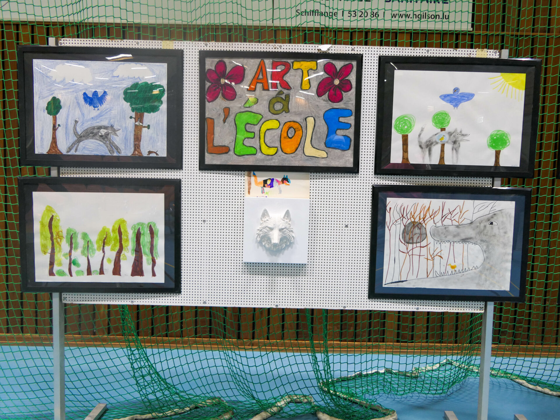 Les illustrations de Pierre et le Loup, réalisées dans le cadre du projet Art à l’école, ont fait partie intégrante du décor et ont enrichi l’atmosphère visuelle du concert avec une touche ludique et créative.