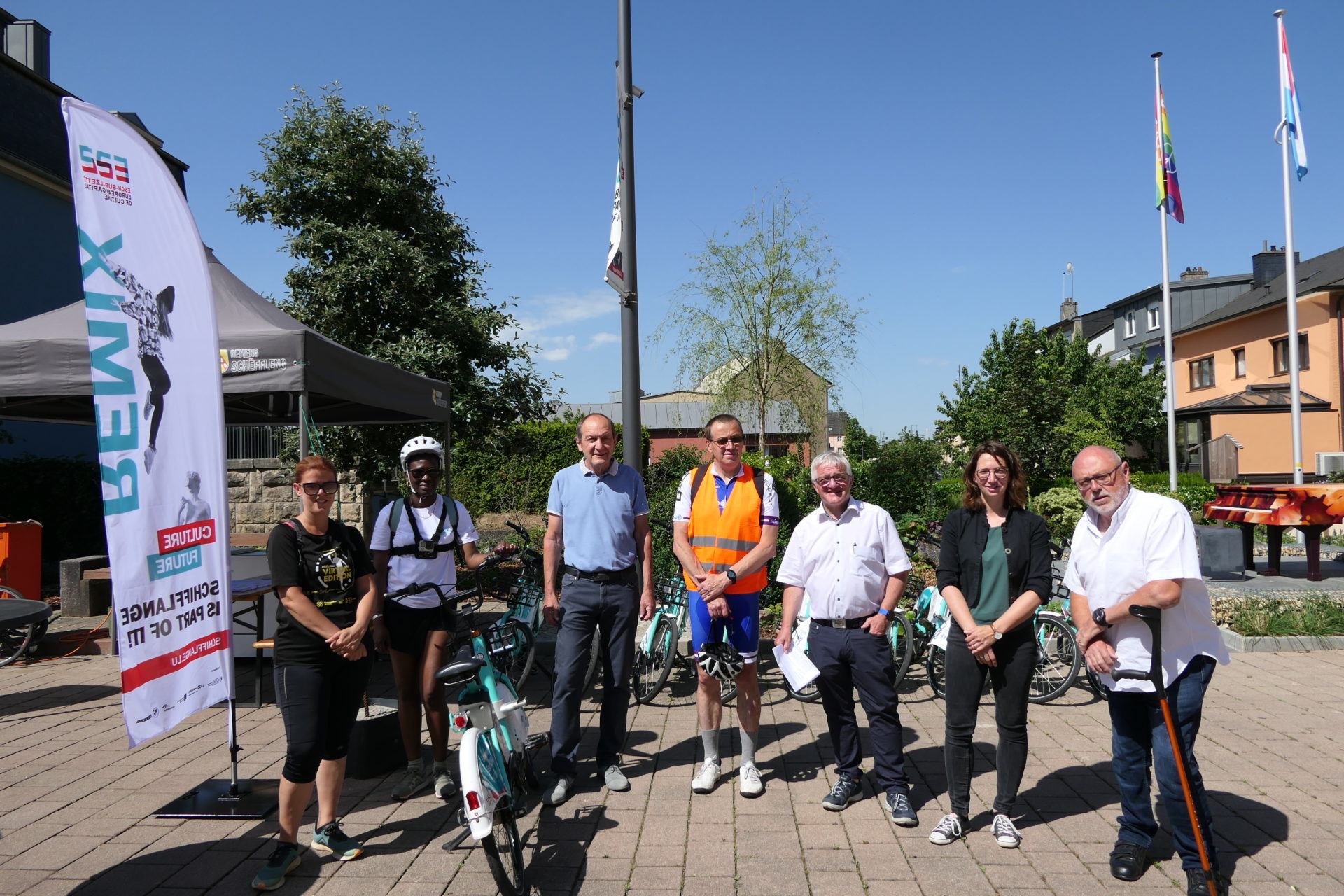 De Marc Spautz, Schäffen, an de Manfred Greger, President vun der Ëmweltkommissioun, konnten de Präis fir d’Gemeng Schëffleng um Klimapakt-Dag 2022 den 9. Juni entgéint huelen: