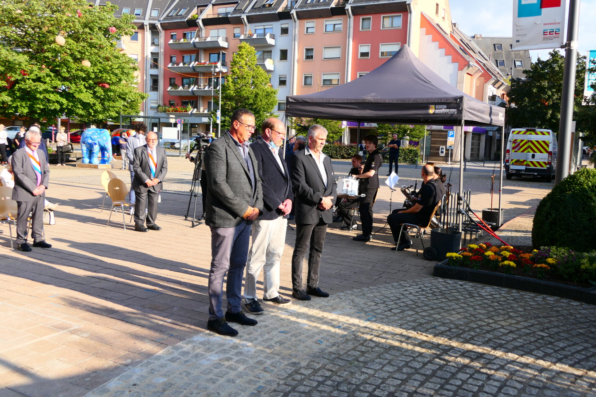 Den 31. August 2021 huet de Schäffen- a Gemengerot am klenge Krees den Affer vum Generalstreik vun 1942 geduecht, dëst a Presenz vu Vertrieder vun der Ligue Luxembourgeoise des Prisonniers et Déportés politiques (LPPD), den Enrôlés de force, dem Syndicat d’Initiative et de Tourisme (S.I.T), de Gewerkschaften a FerroForum. Mat der Kranznidderleeung zu Esch/Schëfflenger Schmelz (Portal Lalleng) hunn d’Festivitéiten ënnert der Regie vun der Amicale Schmelzaarbechter-Musée a ronderëm de Präsident Alain Günther den Ufank gemaach. Dono ass et beim Monument op der Fräiheetsplaz zu Schëffleng weidergaangen, a genau ewéi virun 79 Joer, wou d’Aarbechter zum Streik opgeruff gi sinn, ass um Punkt 18:00 Auer d’Sireen gaangen.