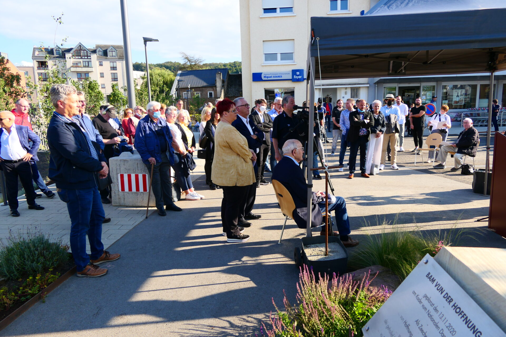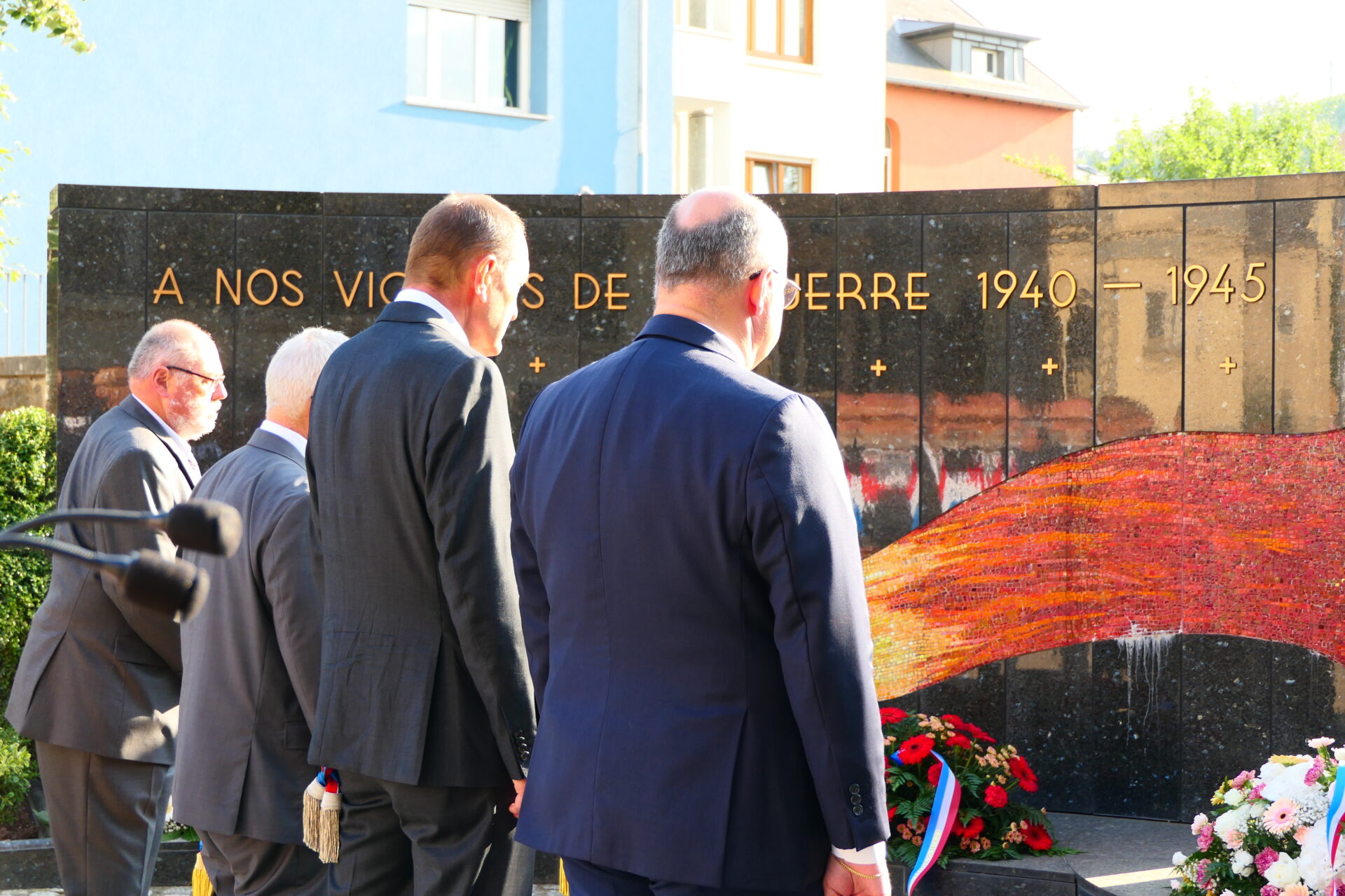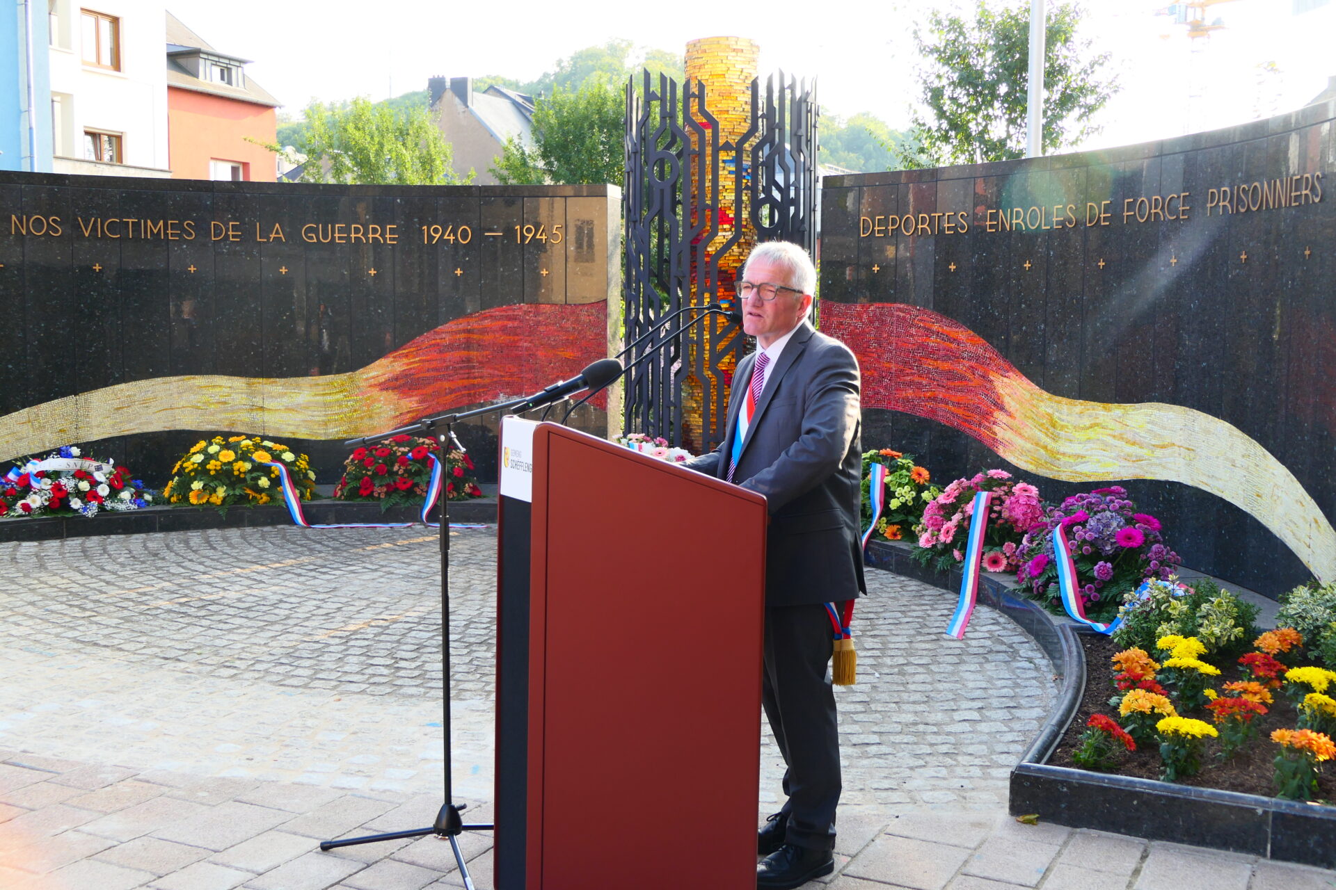 Zum Schluss geet den Här Buergermeeschter drop an, datt mir ni vergiesse sollen, wat geschitt ass, déi Leit éiere wëllen, déi sech fir Fridden a Gerechtegkeet staark gemaach hunn a sech virun An halen, datt Näischt op dëser Welt selbstverständlech ass, scho guer net de Fridden an d’Gerechtegkeet.