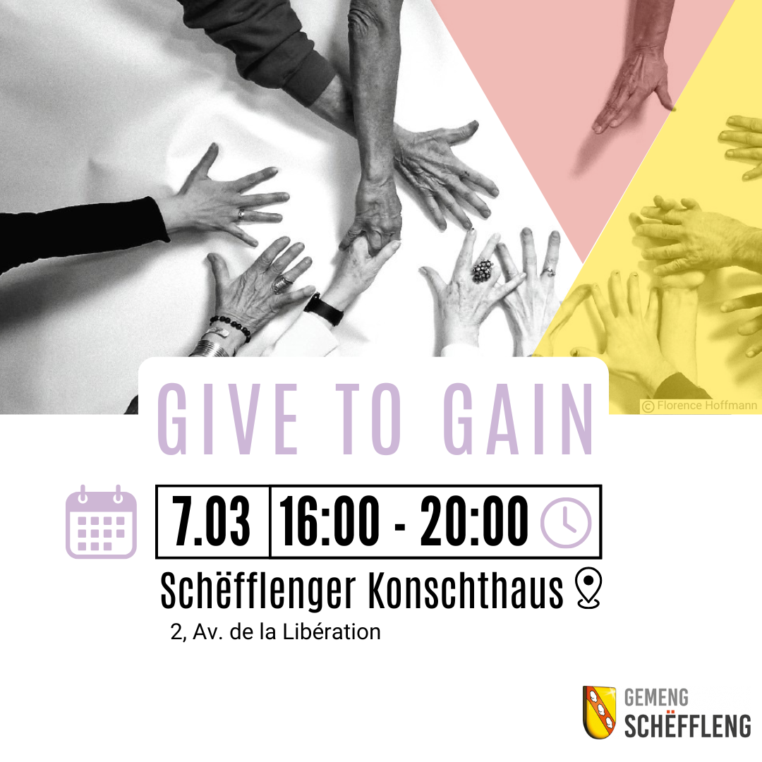 Ënnert dem Motto “Give to Gain” – Giving time, stories and creativity to gain visibility, connection, and change – erwaart Iech e liewege Programm mat Konscht, Diskussiounen an Ateliere fir Grouss a Kleng.